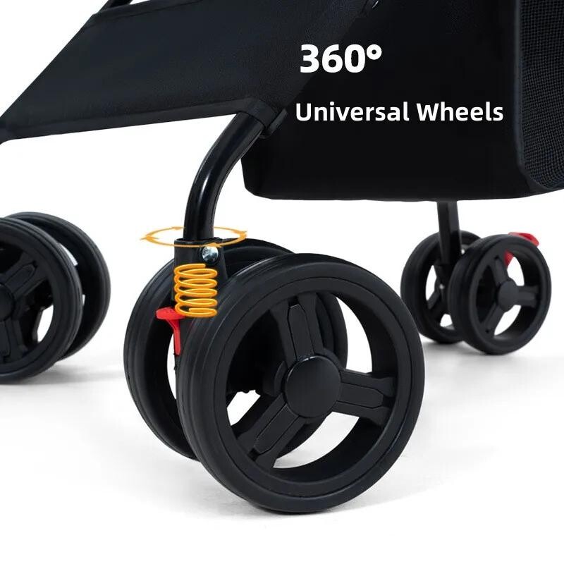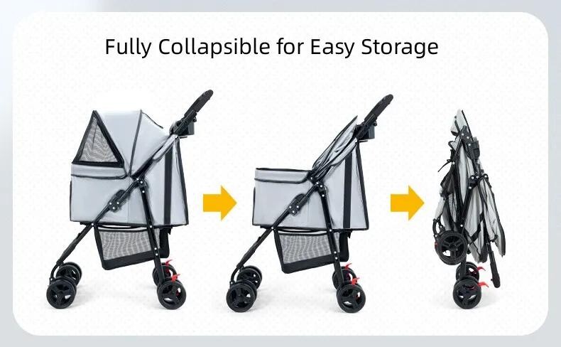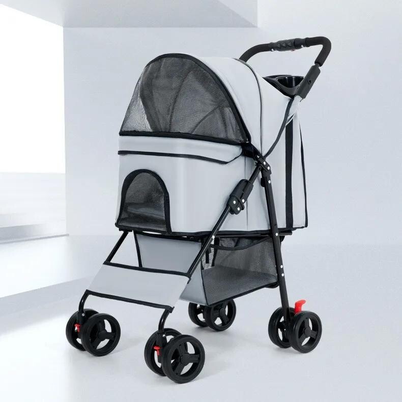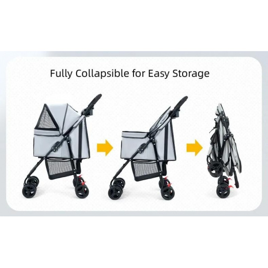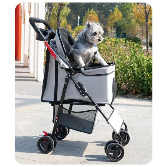 Kočárek pro psy, kočky a jiná zvířata - dá se jednoduše složit do auta, velmi skladný a praktický, nosnost 30 kg, vhodný pro starší zvířata je možno tlačit před sebou jako běžné kočárky.