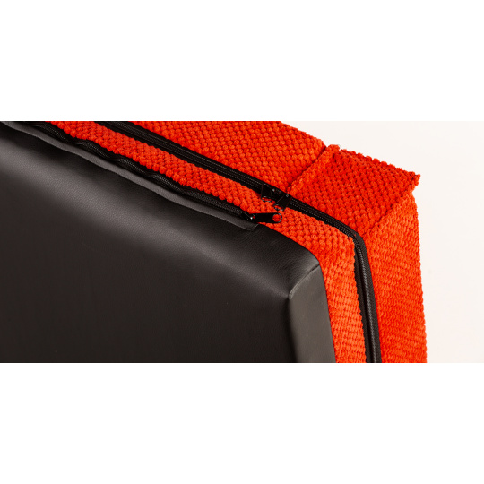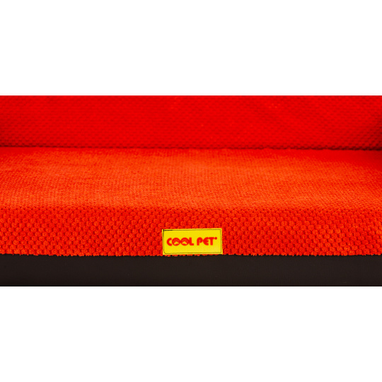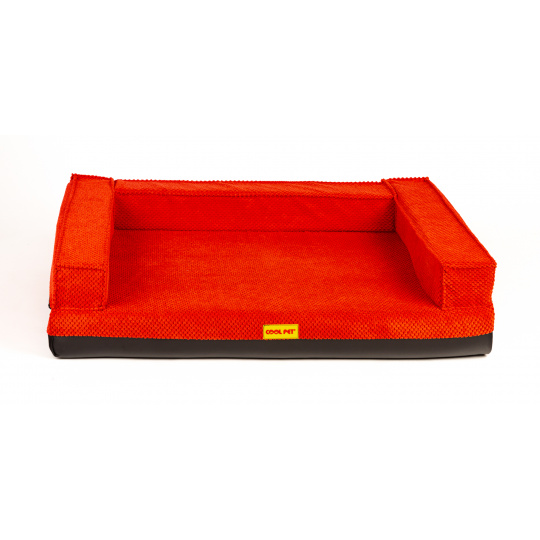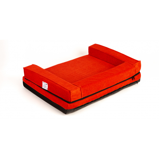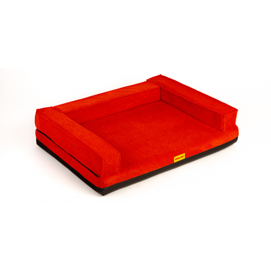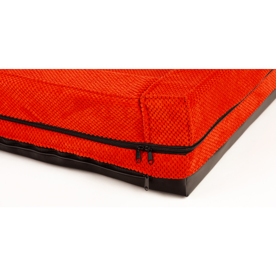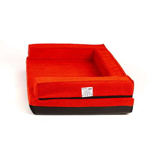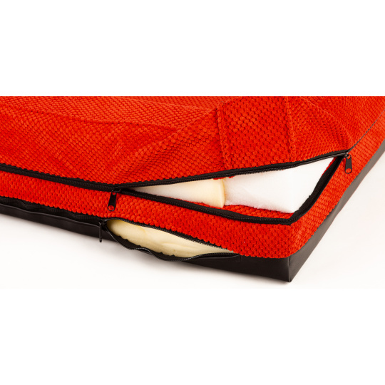 Ortopedický pelíšek, polstrovaný okraj - červený velur/červená eko kůže