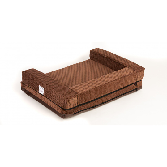 Ortopedický pelíšek, 5 velikostí, polstrovaný okraj 10cm vysoká paměťová pěna hnědý velur/hnědá eko kůže