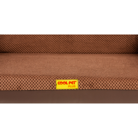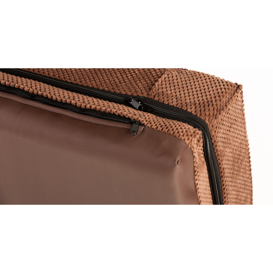 Ortopedický pelíšek, 5 velikostí, polstrovaný okraj 10cm vysoká paměťová pěna hnědý velur/hnědá eko kůže 70x52cm, vnitřní velikost 50x42cm