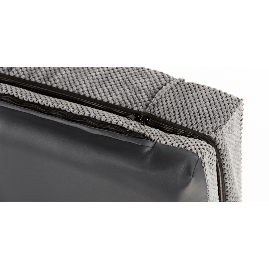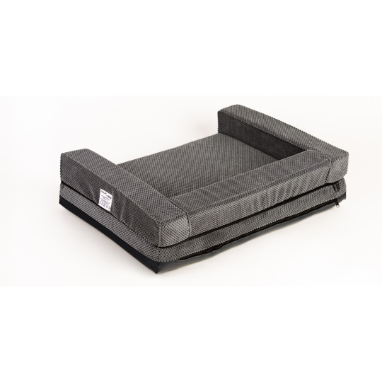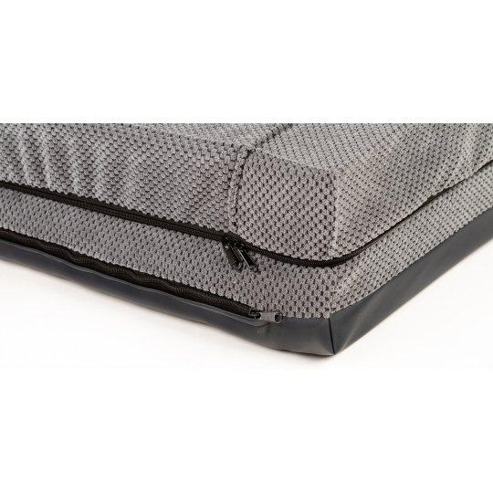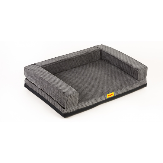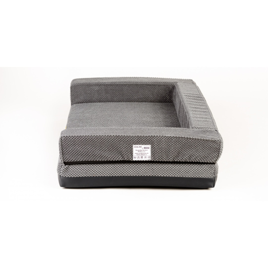 Ortopedický pelíšek, 5 velikostí, s polstrovaným okrajem šedý velur/spodek šedá eko kůže, 10cm vysoká paměťová pěna, gauč