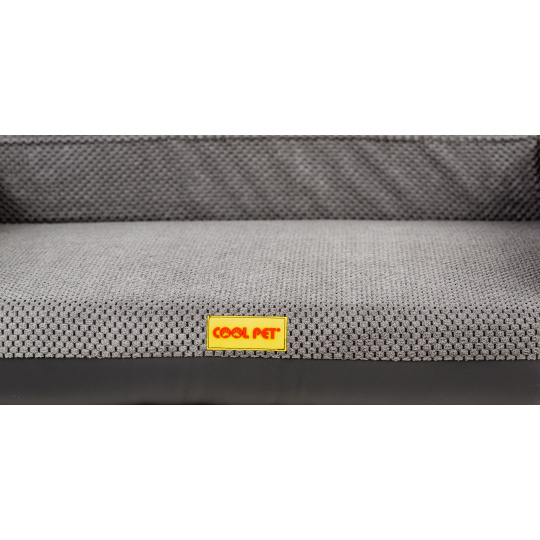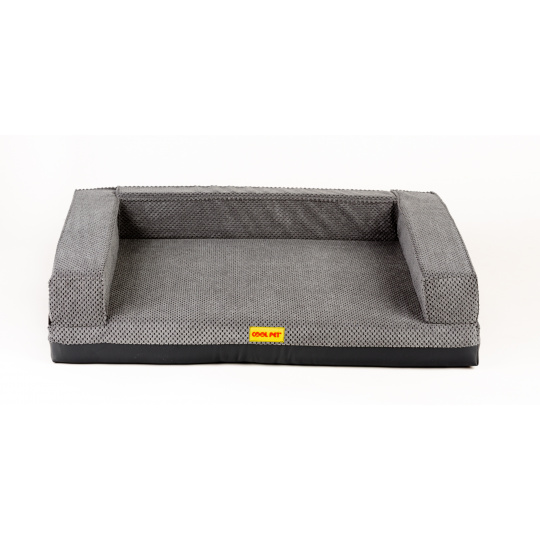 Ortopedický pelíšek, 5 velikostí, s polstrovaným okrajem šedý velur/spodek šedá eko kůže, 10cm vysoká paměťová pěna, gauč 70x52cm, vnitřní velikost 50x42cm