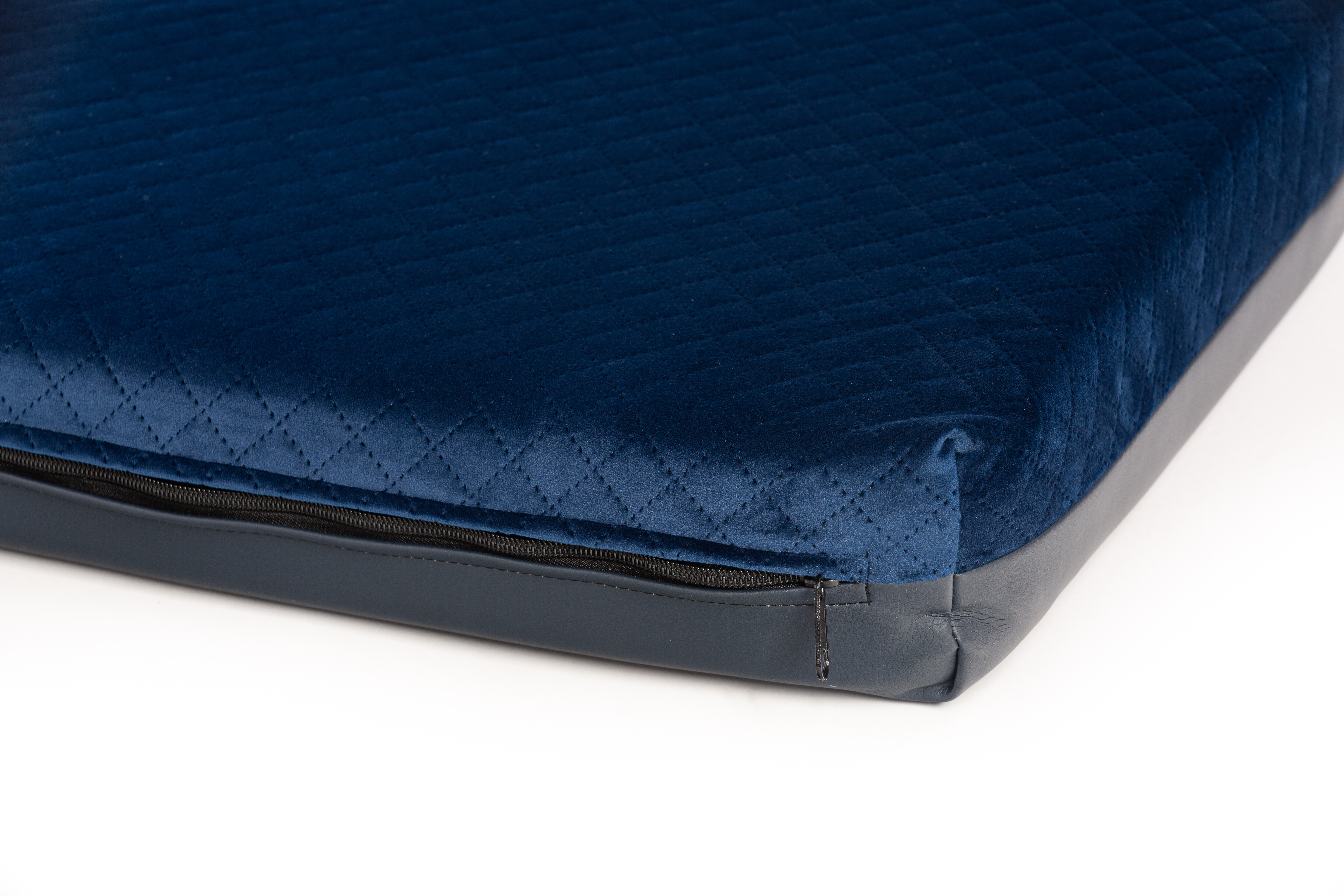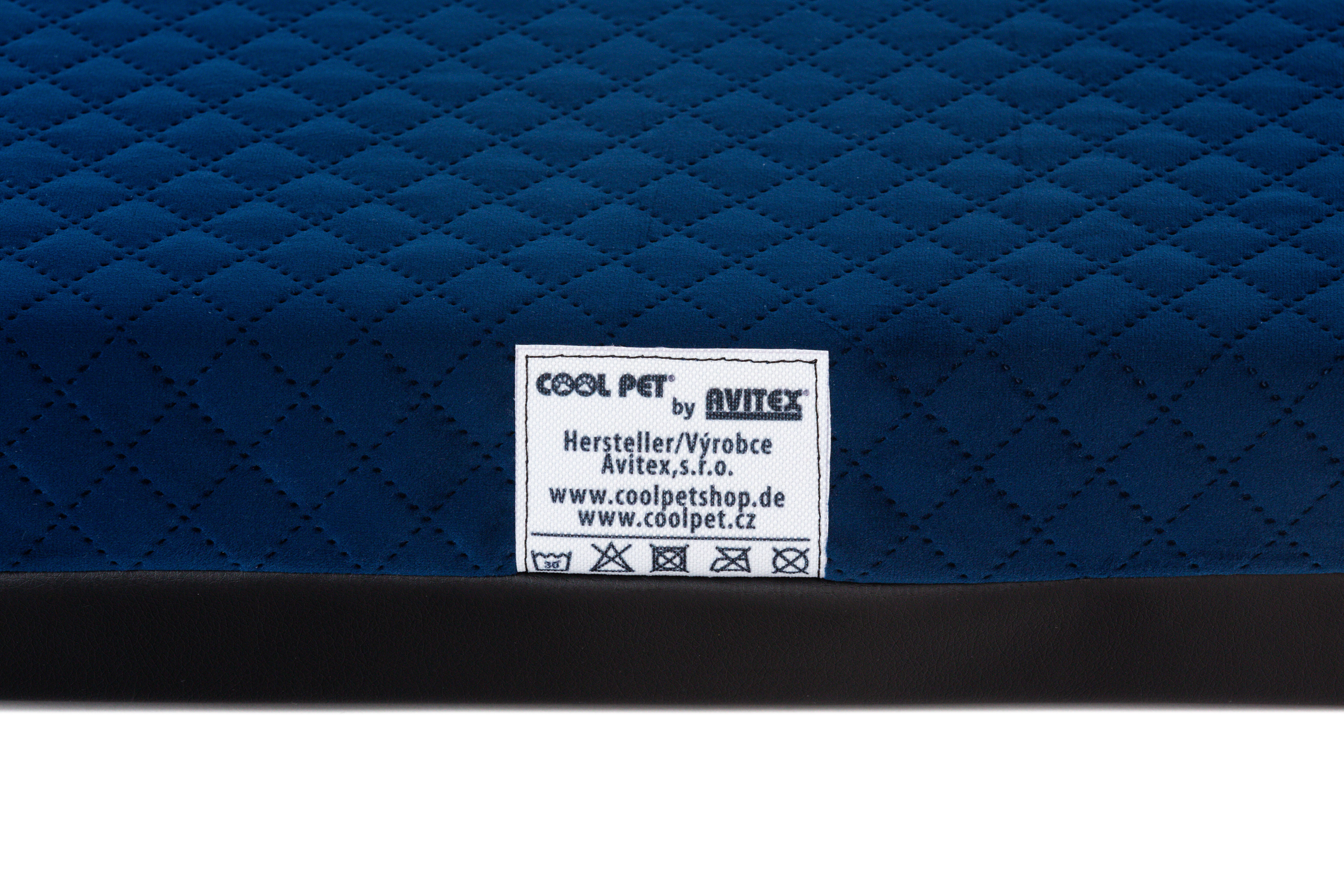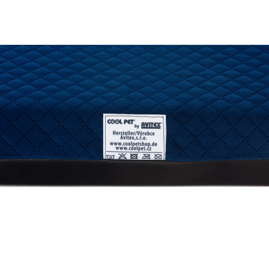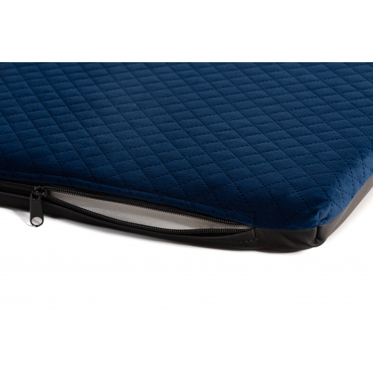 Ortopedický pelíšek - prošívaný velur tmavě modrá/černá eko kůže