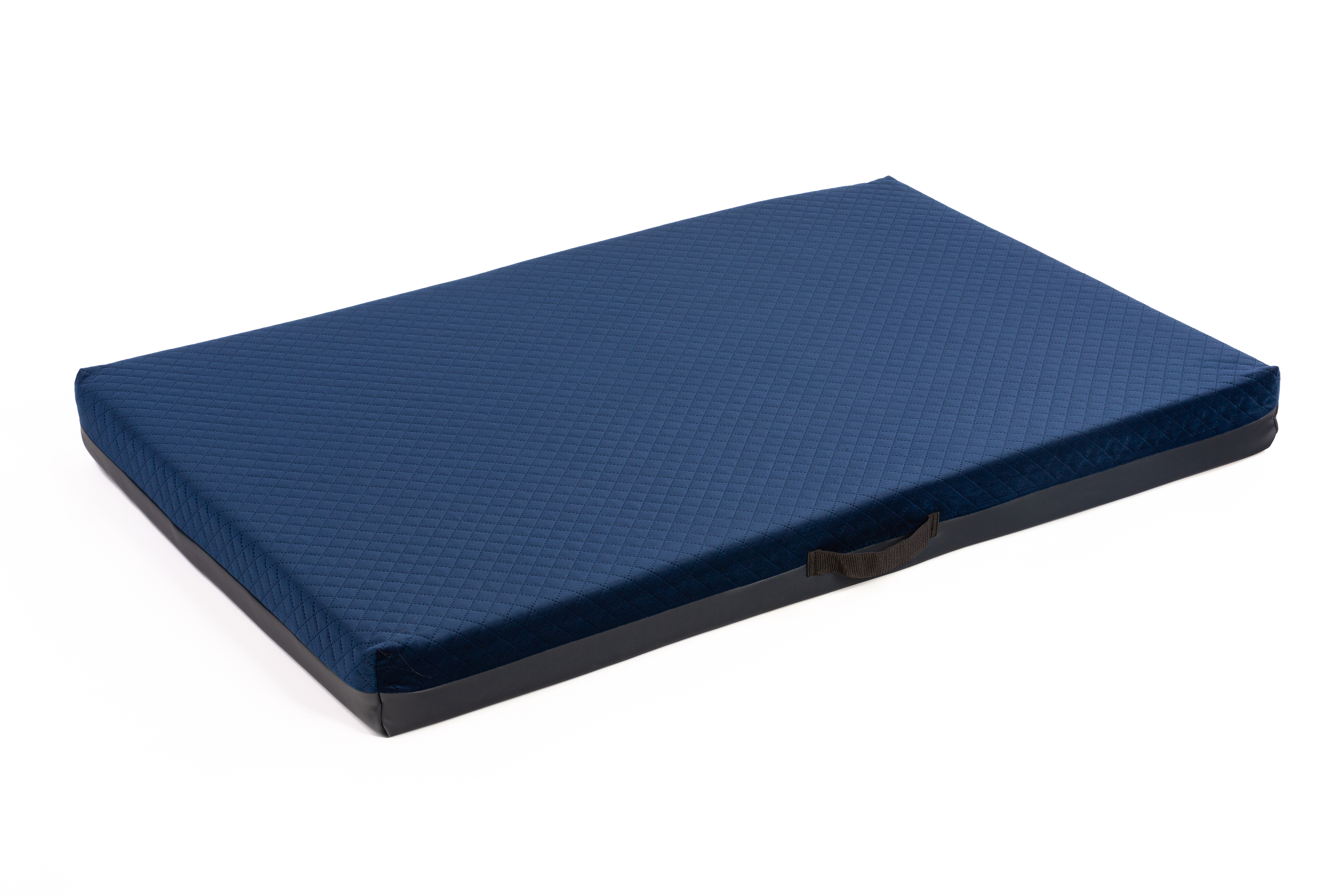 Ortopedický pelíšek - prošívaný velur tmavě modrá/černá eko kůže Velikost matrací: 50x35cm