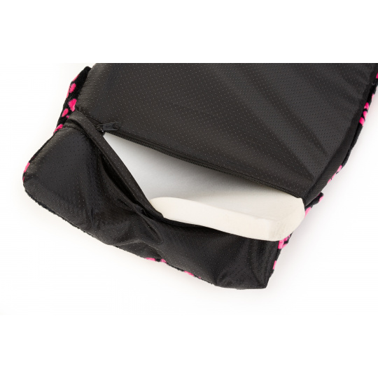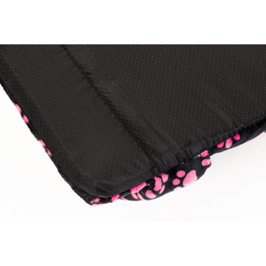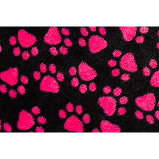 Pelíšek - "pantofel" černá/růžové tlapky fleecový materiál