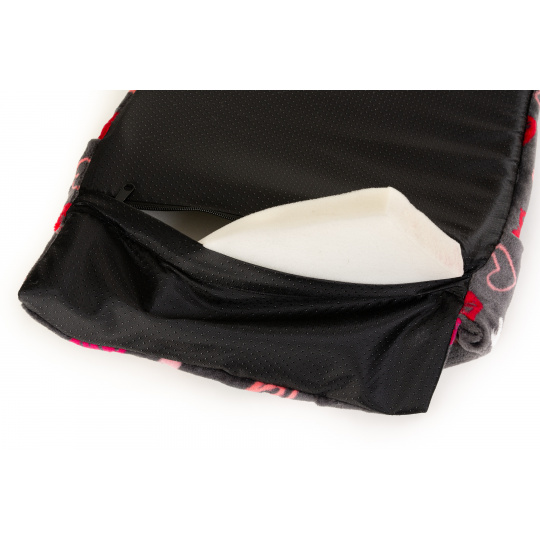 Pelíšek - "pantofel" šedá/červená srdce Velikost matrací: 58x40cm
