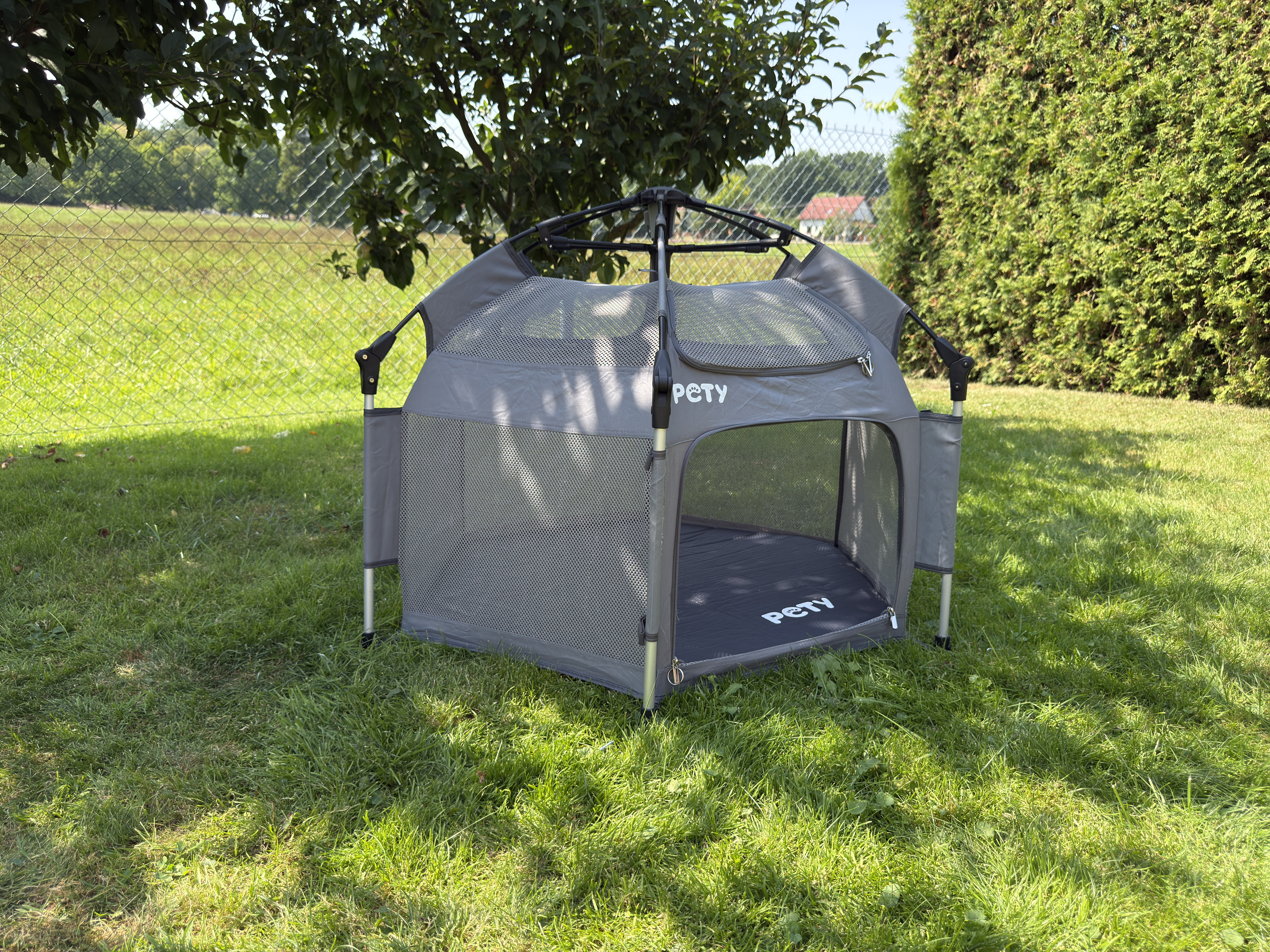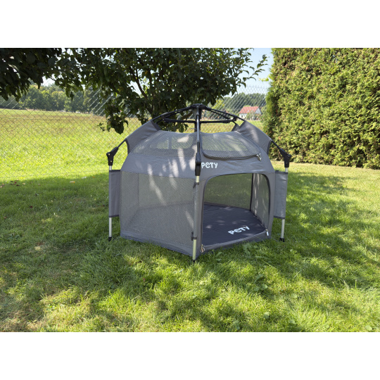Maximálna bezpečnosť: ohrádka PETY ponúka maximálnu bezpečnosť pre vášho maznáčika. Vďaka sieťovaným stenám je PETY optimálne vetraná a vy budete mať svojho maznáčika stále na očiach. Navrhnuté a patentované vo Švajčiarsku. Pety je dodávám s obalem na prenos.