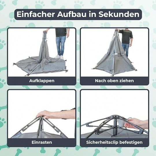 Rozsloženie a zloženie v priebehu niekoľkých sekúnd: Box pre psov je možné rýchlo a ľahko zostaviť a rozložiť vďaka špeciálnej technológii. Bezpečnostný klip zaisťuje maximálnu bezpečnosť vášho maznáčika.