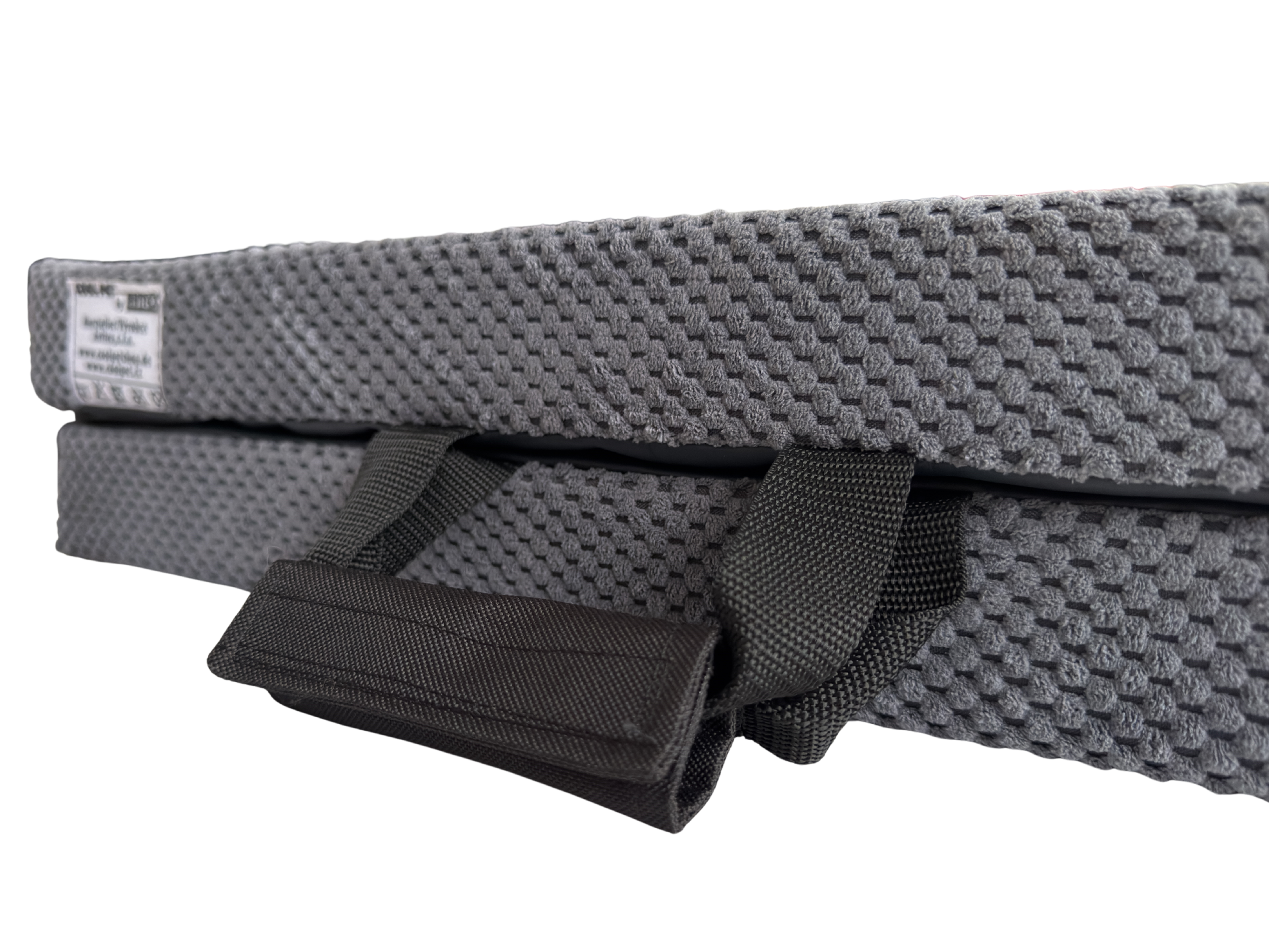 A protože víme, že život se psy je plný pohybu – matrace se jednoduše složí napůl a díky praktickému přenosnému uchu ji vezmete kamkoliv. Na chatu, k babičce, na dovolenou. Váš pes bude mít svůj pelíšek vždy u sebe 🐕