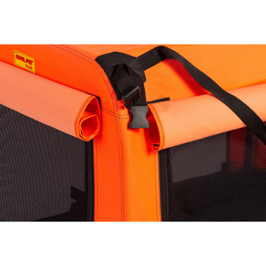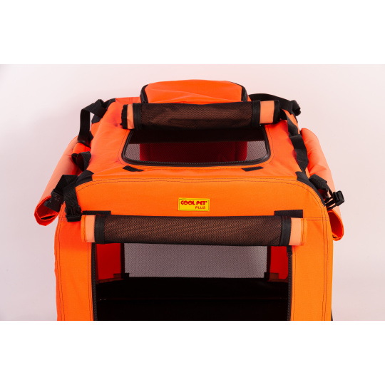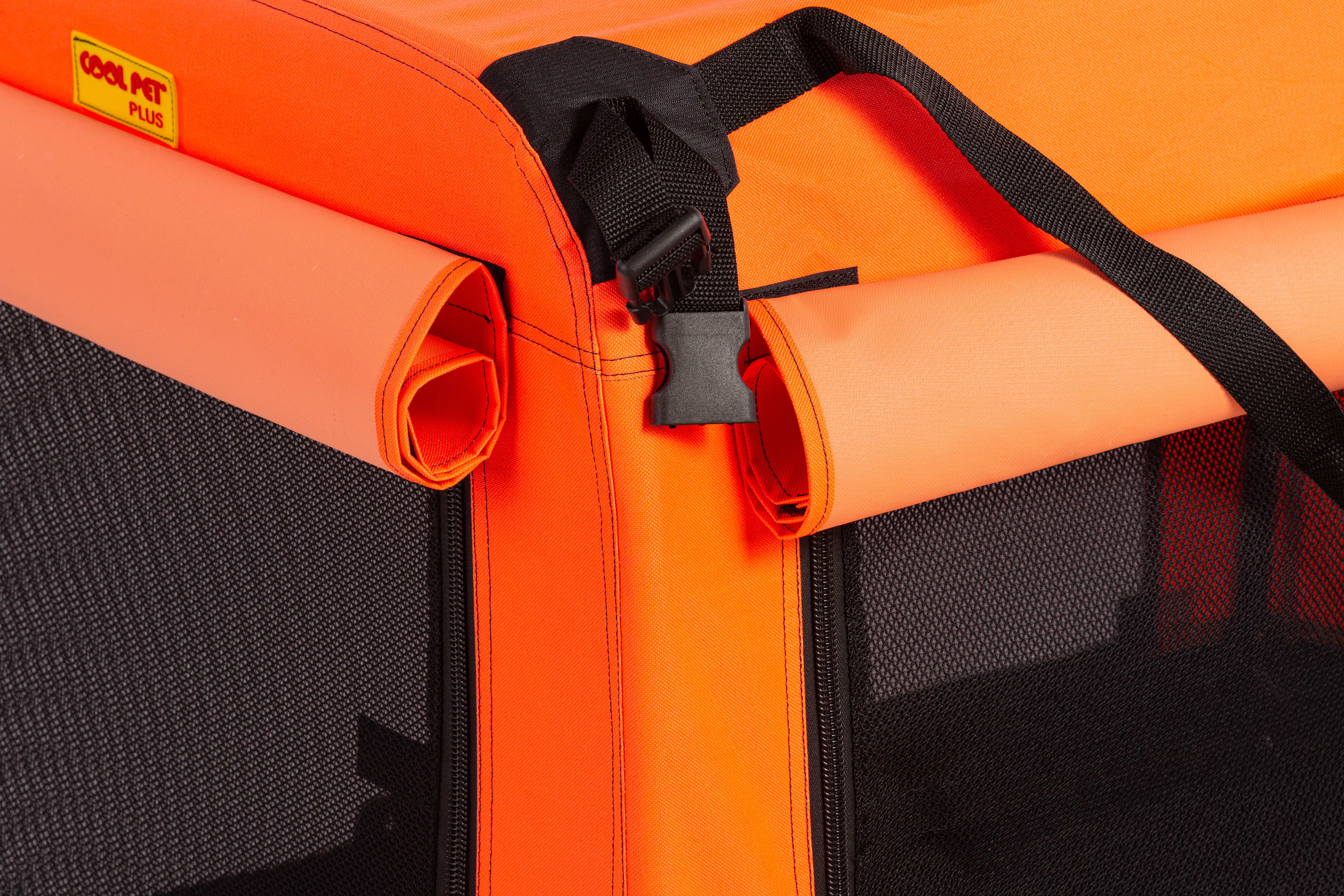 Skládací textilní domeček COOL PET PLUS je kvalitní český výrobek s pevnou vnitřní ocelovou konstrukcí, velmi lehký na nošení a jednoduché skládání/rozkládání. Vnitřní rám z ocele zaručuje dlouhou životnost a ochranu vašeho psa. Úchyty sloužící k protažení bezpečnostními pásy zvyšují bezpečnost vašeho psa. Domeček může být stejně tak umístěn na zadních sedadlech. Speciální pevná tkanina, odolná síťovina je použita ve všech oknech a vchodech - jeden ze předu, druhý z boku. Vchody i okna je možné zatemnit roletkou ze stejného materiálu, jako je celý box. Zátěžové zipy zajišťují jednoduchou manipulaci a dlouhou trvanlivost. Vodě odolný základ chrání před vlhkosti např. z mokré trávy neprosákne dovnitř. Ideální na přepravu psů a koček do auta, na cesty, výstavy, dovolenou i na domácí použití. Složený box je umístěn v tašce na přenos. Doporučujeme dokoupit matraci, podložku v sekci matrace pro psy, která je měkká, pohodlná, 3 cm nebo 5cm silná, může se vysvléci a prát, povrch je vodě odolný, různé barvy a materiály - eko kůže, Oxford materiál a další, kvalitní výrobek COOL PET.